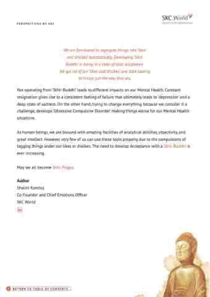 As human beings, we are blessed with amazing facilities of analytical abilities, objectivity, and great intellect. However, very few of us can use these tools properly due to the compulsions of tagging things under our likes or dislikes. The need to develop Acceptance with a Sthir Buddhi is ever increasing.