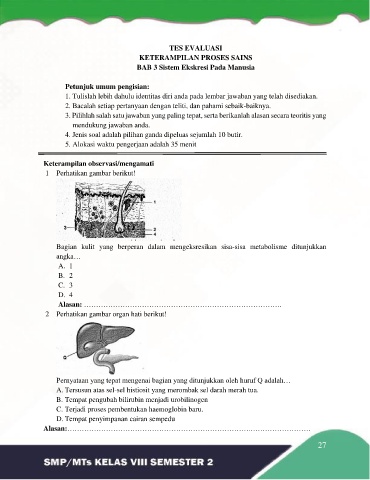 Bagian kulit yang berperan dalam mengeksresikan sisa-sisa metabolisme ditunjukkan