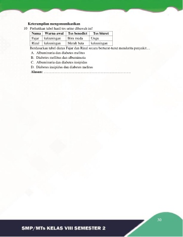 10 Perhatikan tabel hasil tes urine dibawah ini!