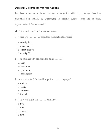 the phoneme or sound /f/ can be spelled using the letters f, ff, or ph. Counting