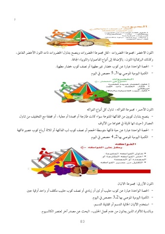 -الحصة الواحدة عبارة عن حبة فاكهة متوسطة الحجم أو نصف كوب لب الفاكهة أو ثلاثة أرباع كوب عصير فاكهة