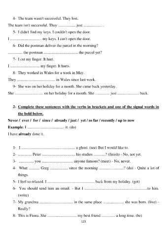 2- Complete these sentences with the verbs in brackets and one of the signal words in