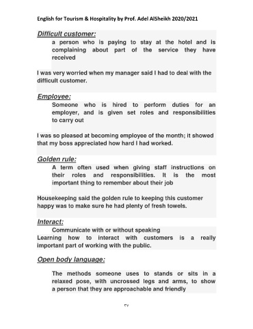 English for Tourism & Hospitality by Prof. Adel AlSheikh 2020/2021