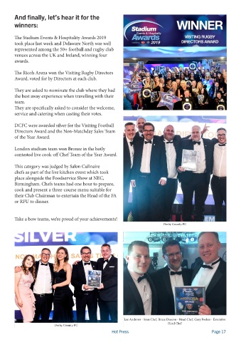 The Stadium Events & Hospitality Awards 2019 VISITING RUGBY