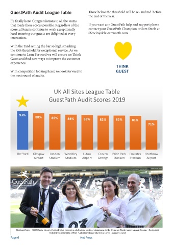 GuestPath Audit League Table Those below the threshold will be re- audited before