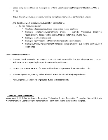 Accountant I, II; Office Assistant; Accounting Technician Senior; Accounting Technician; Special Districts
