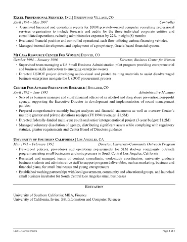 • Served as business manager and chief financial officer of an alcohol and drug abuse prevention non-profit
