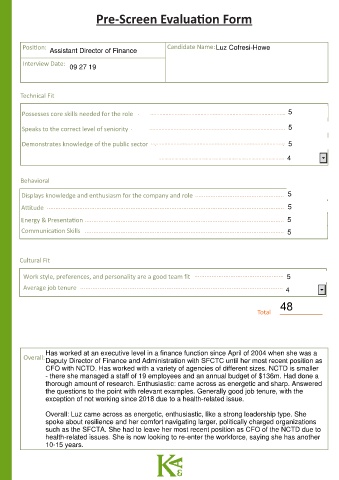 Overall: Luz came across as energetic, enthusiastic, like a strong leadership type. She