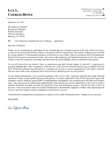Thank you for considering my application for the Assistant Director of Finance position in the City of San José (City),
