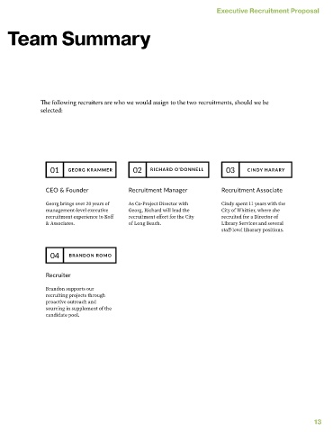 recruitment experience to Koff recruitment effort for the City recruited for a Director of