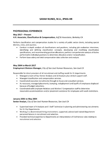 H.R. Associate, Classification & Compensation, Koff & Associates, Berkeley CA
