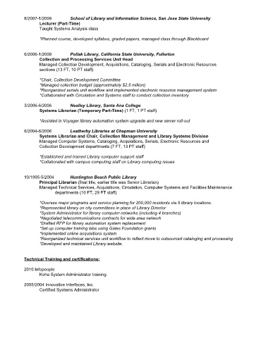 8/2007-1/2009 School of Library and Information Science, San Jose State University
