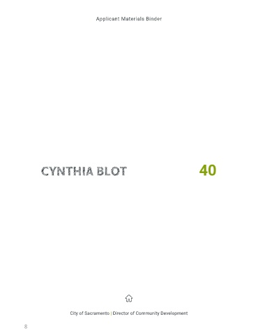 Applicant Materials Binder Cynthia blot 40 City of Sacramento | Director of Community Development 8 8