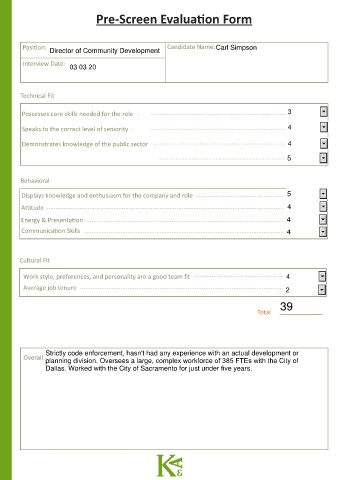 Overall: Strictly code enforcement, hasn't had any experience with an actual development or