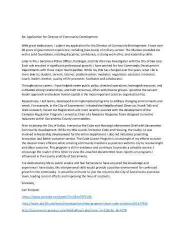 With great enthusiasm, I submit my application for the Director of Community Development. I have over