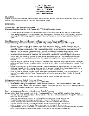Code and Housing Enforcement Chief February 2015 – May 2019 (80.5 FTE) (6 million-dollar budget)