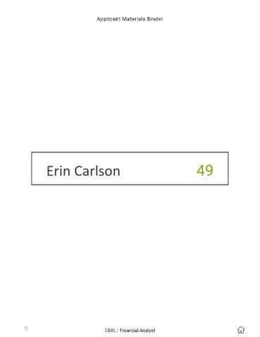Applicant Materials Binder Erin Carlson 49 5 CBBL | Financial Analyst