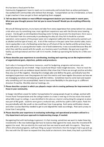 6. Please describe your experience in coordinating, tracking and reporting out on the implementation 10. This position will interact with managers throughout the City as well as partner organizations and