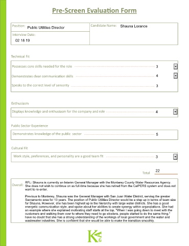 Pre-Screen Evaluation Form