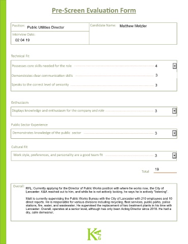 Position: Public Utilities Director Candidate Name: Matthew Metzler