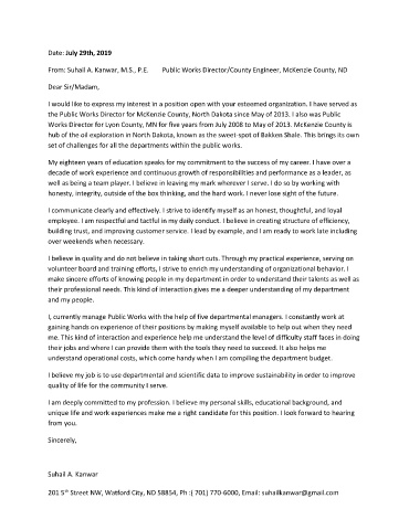 From: Suhail A. Kanwar, M.S., P.E. Public Works Director/County Engineer, McKenzie County, ND