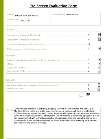 Position: Director of Public Works Candidate Name: Koosun Kim