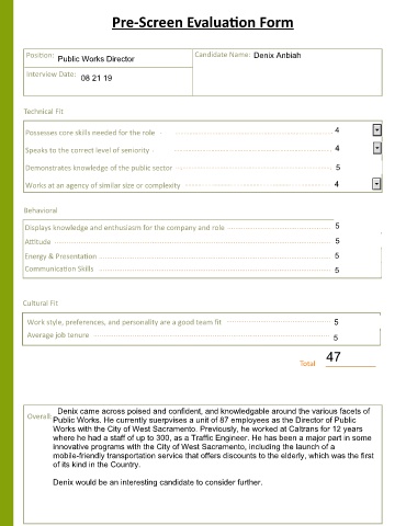 Position: Public Works Director Candidate Name: Denix Anbiah
