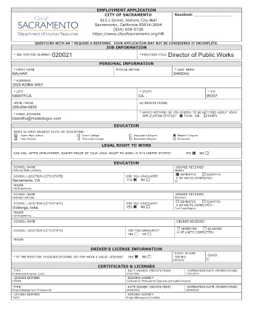 CITY OF SACRAMENTO Received: __________________