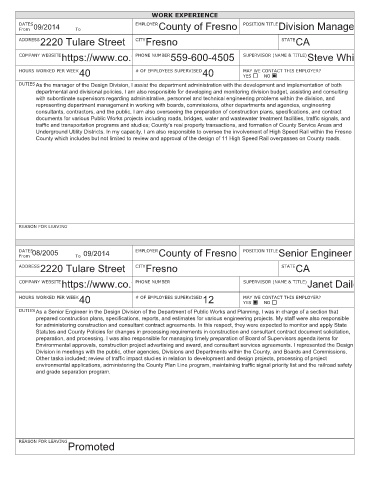 DATES EMPLOYER County of Fresno POSITION TITLE Senior Engineer