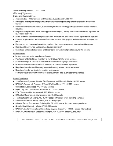 Provided variety of consultation, event-management and turnkey parking operations based on client