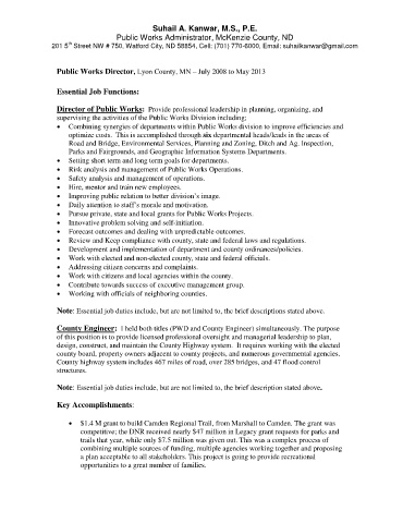 Public Works Director, Lyon County, MN – July 2008 to May 2013