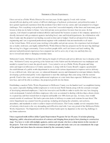 growth. I had to hire, train, and retain professional employees at a rate faster than expected. McKenzie County can