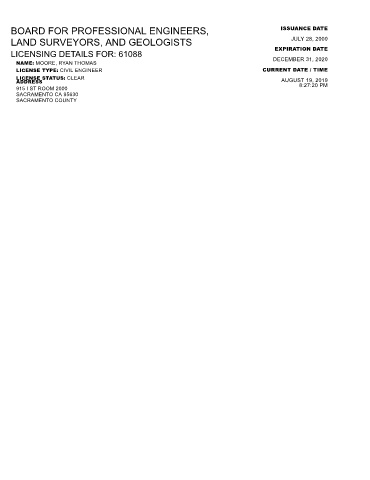 LICENSE TYPE: CIVIL ENGINEER CURRENT DATE / TIME