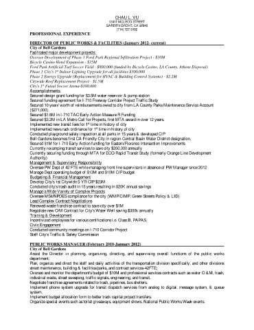 DIRECTOR OF PUBLIC WORKS & FACILITIES (January 2012- current)