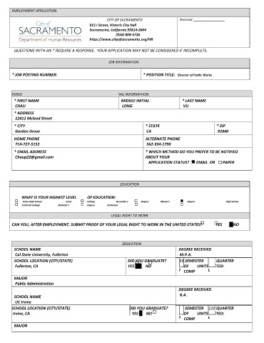 CITY OF SACRAMENTO Received: __________________