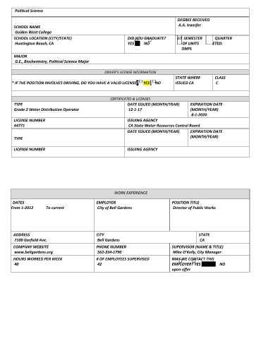 From 1-2012 To current City of Bell Gardens Director of Public Works