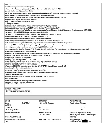 From To 1/2012 City of Bell Gardens Public Works Manager
