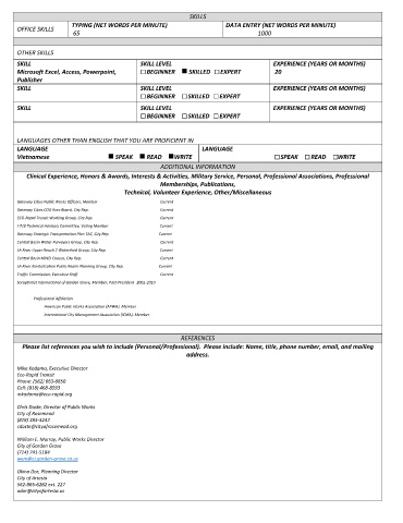 SKILL SKILL LEVEL EXPERIENCE (YEARS OR MONTHS)