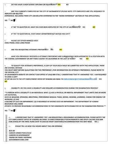3. IF ‘NO’ TO QUESTION #2, HAVE YOU EVER BEEN EMPLOYED BY THE CITY OF SACRAMENTO? YES NO