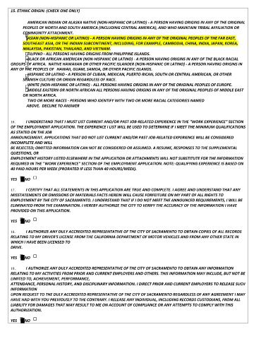 EMPLOYMENT BY THE CITY OF SACRAMENTO. I UNDERSTAND THAT IF I DO NOT MEET THE ANNOUNCED REQUIREMENTS, I WILL BE