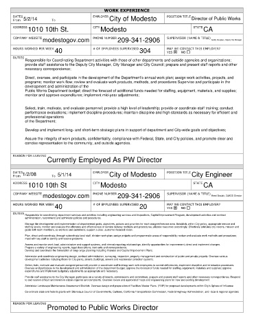 Currently Employed As PW Director