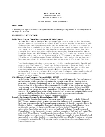 As Public Works Director for City of West Sacramento, I plan, organize, assign and direct the activities,