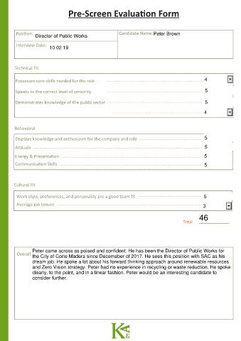 Overall: Peter came across as poised and confident. He has been the Director of Public Works for