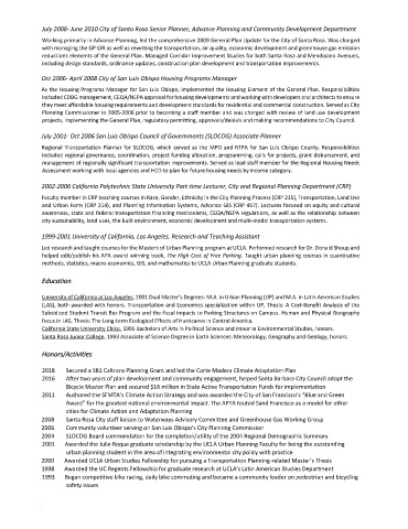 July 2001- Oct 2006 San Luis Obispo Council of Governments (SLOCOG) Associate Planner