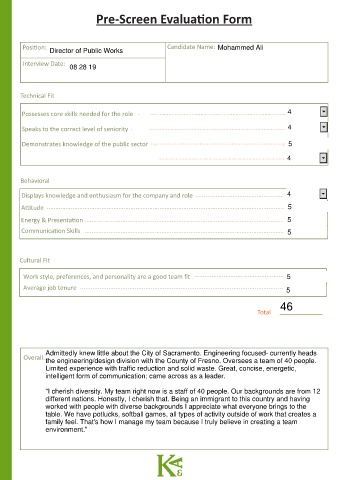 Limited experience with traffic reduction and solid waste. Great, concise, energetic,