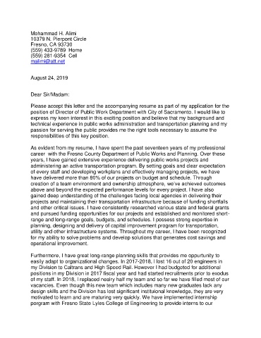 position of Director of Public Work Department with City of Sacramento. I would like to
