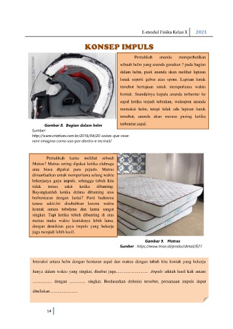 Interaksi antara helm dengan benturan aspal dan matras dengan tubuh kita kontak yang bekerja