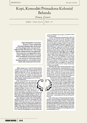 M I N G G U 0 9 . 0 2 . 2 0 2 0 Kopi, Komoditi Primadona Kolonial Belanda Merry Kurnia I S B N : 1 8 2 9 - 8 2 1 4 H a l : 1 5 PADANG EKSPRES 0 0 4