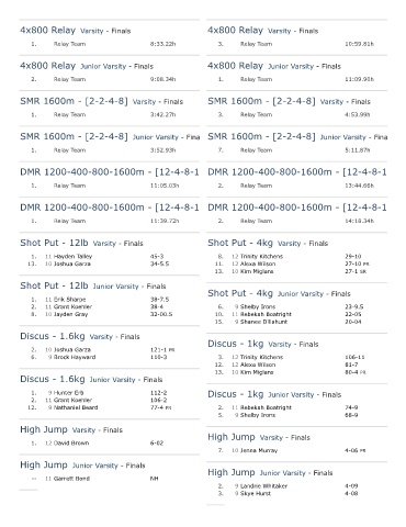 Shot Put - 12lb Varsity - Finals Shot Put - 4kg Varsity - Finals