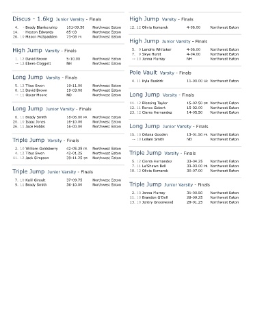 Discus - 1.6kg Junior Varsity - Finals High Jump Varsity - Finals